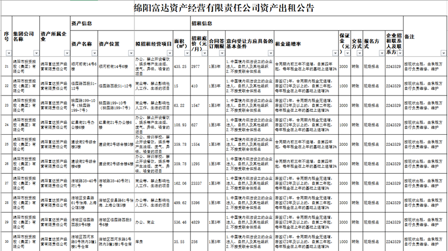 綿陽富達(dá)資產(chǎn)經(jīng)營有限責(zé)任公司資產(chǎn)出租公告