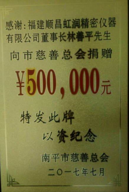 2017年7月28日,南平市慈善捐贈大會暨市慈善總會換屆會議在南平市委舉行,福建順昌虹潤董事長林善平再次當(dāng)選為南平市慈善總會第三屆理事會副會長,這也是林善平董事長第三次當(dāng)選此職。同時,在本次慈善捐贈大會上,他再次向市慈善總會捐款50萬元。他表示,他還將一如既往,繼續(xù)加大對社會公益事業(yè)的支持力度,積極投身公益和慈善事業(yè),為南平市的慈善事業(yè)作出更大的貢獻(xiàn)。目前,林善平董事長各項公益捐款累計已達(dá)1000余萬元。