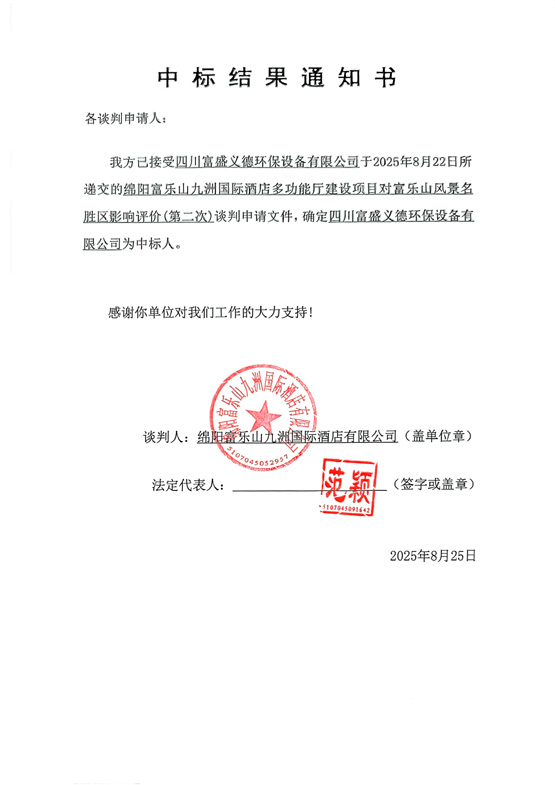 綿陽富樂山九洲國際酒店多功能廳建設(shè)項目對富樂山風景名勝區(qū)影響評價(第二次)中標結(jié)果通知