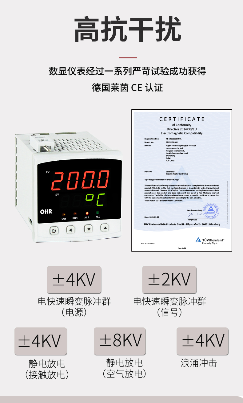 虹潤公司是專業(yè)生產(chǎn)數(shù)顯表的國家專精特新“小巨人”企業(yè),生產(chǎn)的簡易型數(shù)字顯示控制儀,具有全切換信號輸入,多種外形尺寸,高抗干擾,輸入/輸出/電源三隔離,性價比高等特點。該產(chǎn)品不僅通過德國萊茵 CE 認證,還獲得巡回檢測顯示方法及裝置、儀表殼體等2項國家發(fā)明專利,主持起草工業(yè)過程控制系統(tǒng)用模擬輸入兩位或多位輸出儀表、物聯(lián)網(wǎng)智能溫度儀表通用技術(shù)條件等2項國家標準,以及通信系統(tǒng)多通道數(shù)據(jù)采集控制終端規(guī)范軍用標準,參與國際5G標準制定,取得簡易數(shù)顯儀表等3項相關(guān)軟件著作權(quán)。產(chǎn)品廣泛應(yīng)用于電力、石化、冶金、化工、造紙、食品、輕工、制藥、熱處理、水處理、機械配套等各種工業(yè)現(xiàn)場。