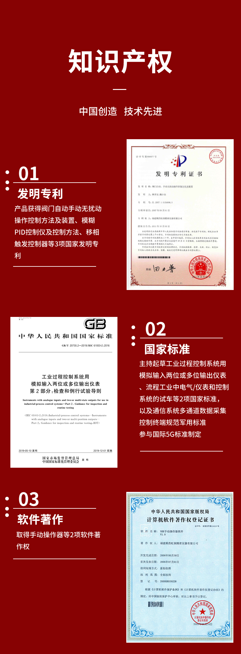 虹潤公司是專業(yè)生產(chǎn)智能手操器的國家專精特新“小巨人”企業(yè),生產(chǎn)的手動操作器,具有手自動無擾切換,直接調(diào)節(jié)閥門,多種輸出類型,外接強制手動功能,高抗干擾等特點。產(chǎn)品獲得閥門自動手動無擾動操作控制方法及裝置、模糊PID控制儀及控制方法、移相觸發(fā)控制器等3項國家標準,主持起草工業(yè)過程控制系統(tǒng)用模擬輸入兩位或多位輸出儀表、流程工業(yè)中電氣/儀表和控制系統(tǒng)的試車等2項國家標準,以及通信系統(tǒng)多通道數(shù)據(jù)采集控制終端規(guī)范軍用標準,參與國際5G標準制定,取得手動操作器等3項相關(guān)軟件著作權(quán)。產(chǎn)品廣泛應(yīng)用于電力、石化、冶金、化工、造紙、食品、輕工、制藥、熱處理、水處理、機械配套等各種工業(yè)現(xiàn)場。