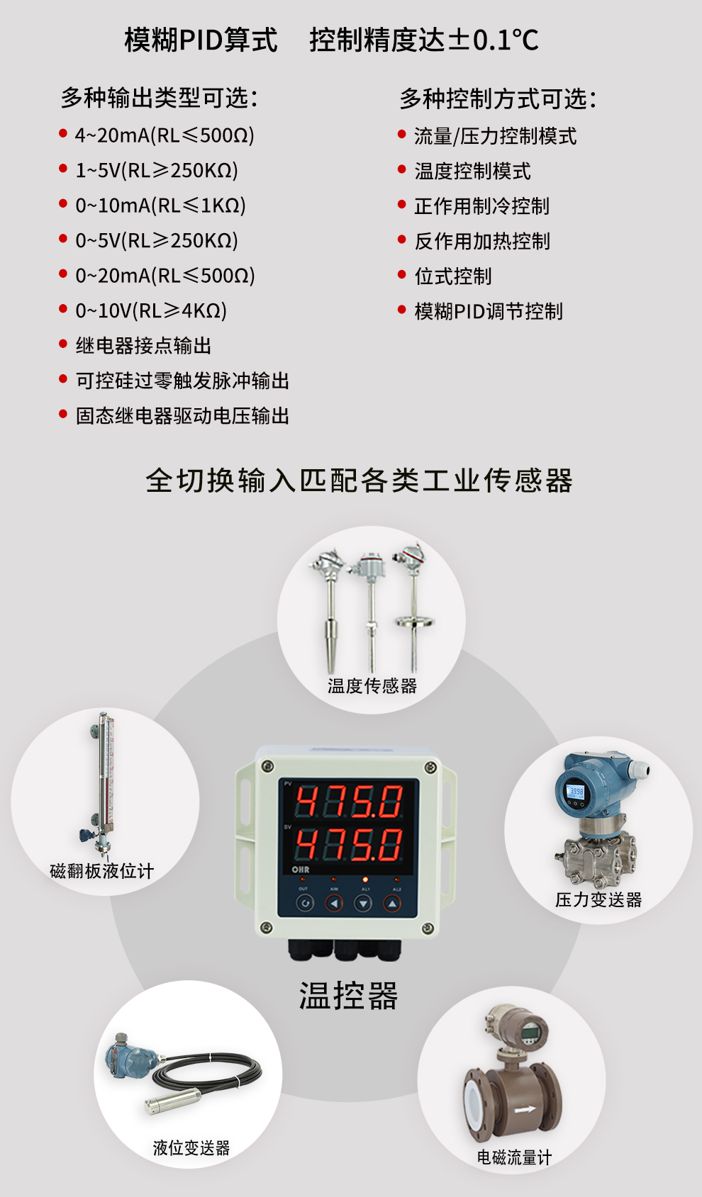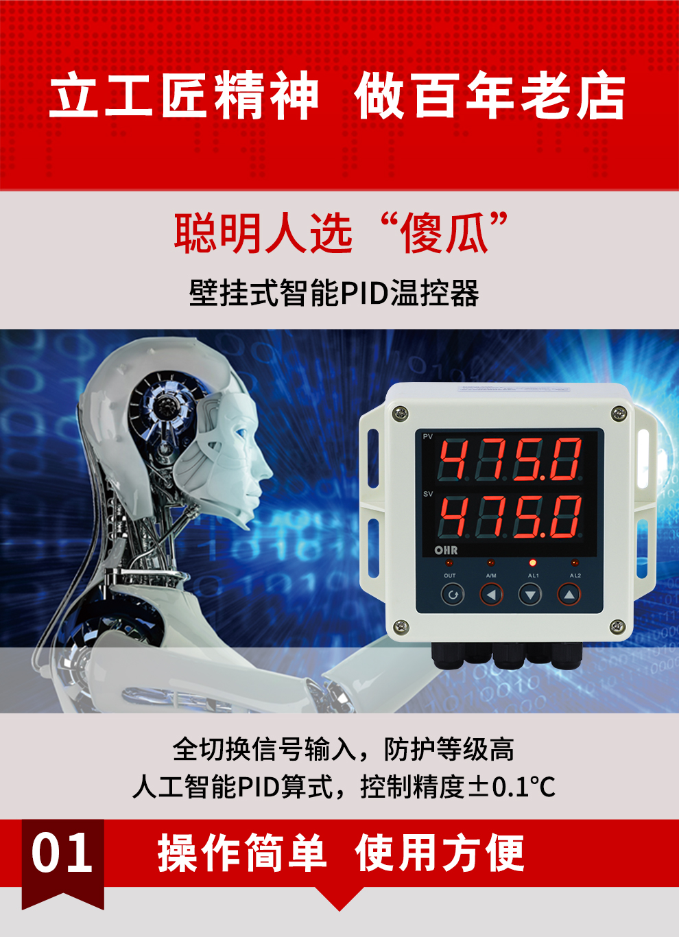 虹潤公司是專業(yè)生產(chǎn)溫控器的國家專精特新“小巨人”企業(yè)。生產(chǎn)的壁掛式PID溫控器,具有全切換信號(hào)輸入,真正人工智能算式,控制精度達(dá)士0.1°C,防護(hù)等級(jí)高,RS485通訊輸出DN等特點(diǎn)。產(chǎn)品獲得模糊PID控制儀及控制方法、人工智能調(diào)節(jié)器、智能化控制器、移相觸發(fā)控制器、閥門自動(dòng)手動(dòng)無擾動(dòng)操作控制方法及裝置等5項(xiàng)國家發(fā)明專利,主持起草主持起草工業(yè)過程控制系統(tǒng)用模擬輸入兩位或多位輸出儀表、物聯(lián)網(wǎng)智能溫度儀表通用技術(shù)條件、工業(yè)過程測量和控制系統(tǒng)用智能調(diào)節(jié)器等3項(xiàng)國家標(biāo)準(zhǔn),以及通信系統(tǒng)多通道數(shù)據(jù)采集控制終端規(guī)范軍用標(biāo)準(zhǔn)。參與國際5G標(biāo)準(zhǔn)制定,取得傻瓜式PID調(diào)節(jié)儀等3項(xiàng)相關(guān)軟件著作權(quán)。產(chǎn)品廣泛應(yīng)用于電力、石化,冶金、制藥、食品等幾乎所有工業(yè)現(xiàn)場,實(shí)現(xiàn)精準(zhǔn)控溫,保障生產(chǎn)安全與質(zhì)量。