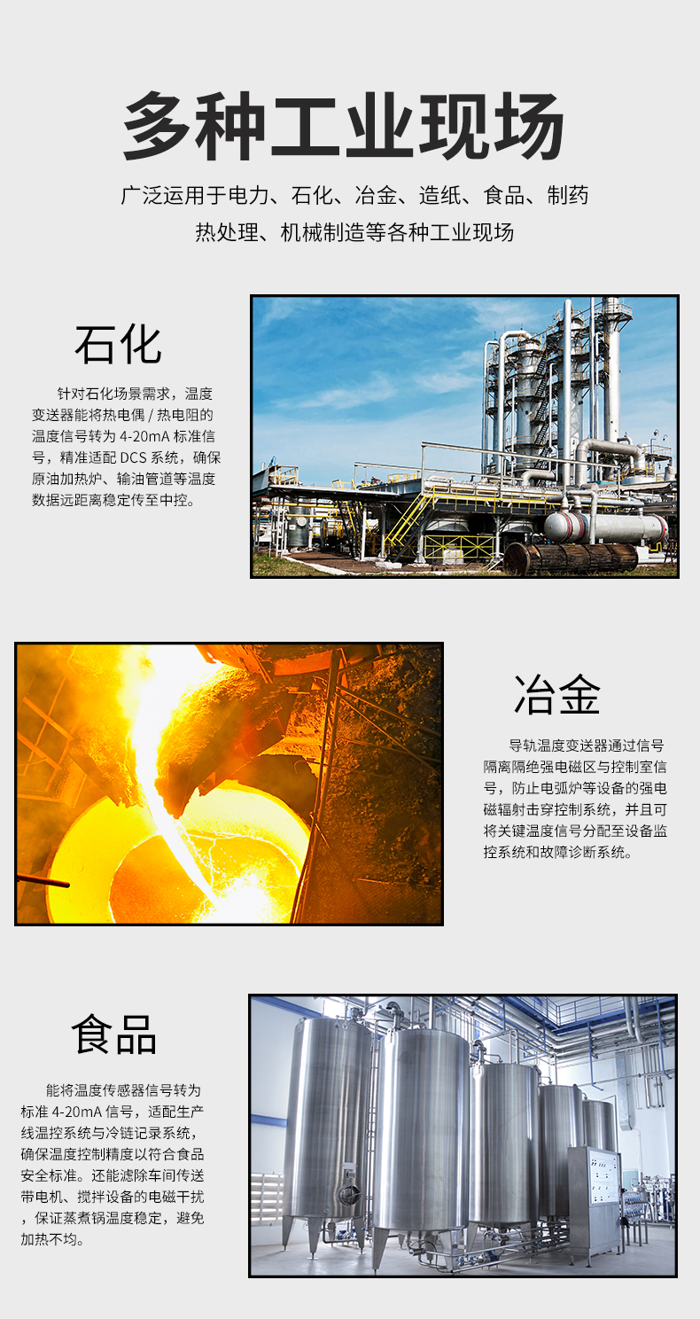 虹潤公司是專業(yè)生產(chǎn)溫度變送器的國家專精特新“小巨人”企業(yè)。生產(chǎn)的溫度變送器,具有采用磁隔離技術(shù),配套編程器可修改參數(shù),抗干擾能力強,穩(wěn)定性好,帶RS485或HART通訊等特點。該產(chǎn)品不僅通過HART基金會認(rèn)證、德國萊茵 CE 認(rèn)證與 SIL 功能安全認(rèn)證,還獲得具備減震抗干擾能力的溫度變送器、信號隔離器、一種二端子模塊、無源信號隔離器等4項國家發(fā)明專利,主持起草物聯(lián)網(wǎng)智能溫度儀表、現(xiàn)場設(shè)備工具(FDT)接口規(guī)范、工業(yè)過程測量和控制系統(tǒng)用溫度變送器等3項國家標(biāo)準(zhǔn),以及通信系統(tǒng)多通道數(shù)據(jù)采集控制終端規(guī)范軍用標(biāo)準(zhǔn),參與國際5G標(biāo)準(zhǔn)制定,取得溫度變送器等5項相關(guān)軟件著作權(quán)。產(chǎn)品廣泛應(yīng)用于石油、電力、化工,冶金、制藥、紡織、橡膠制造等工業(yè)領(lǐng)域現(xiàn)場自動化測溫過程。