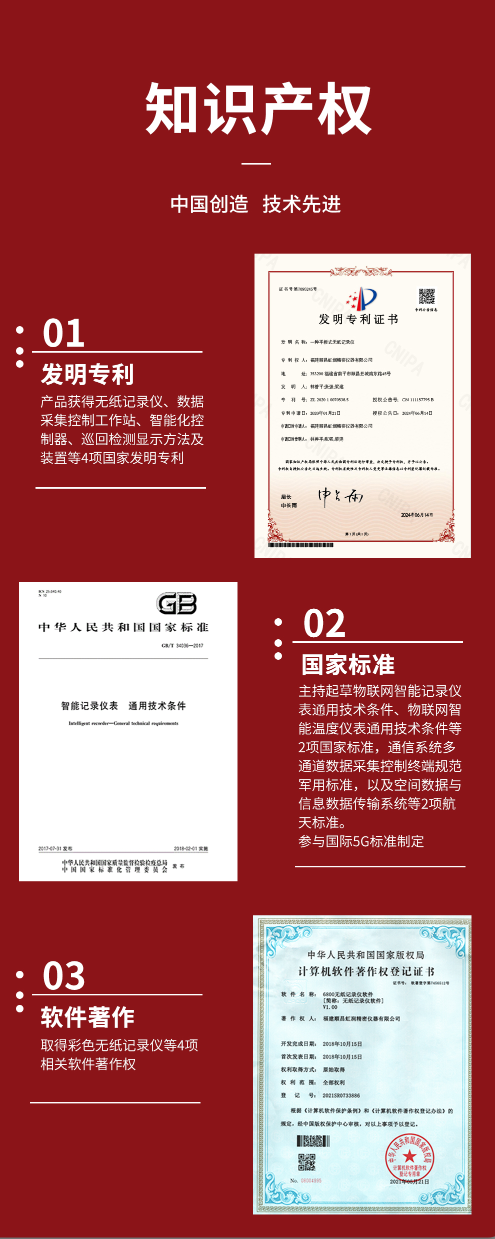 虹潤公司是專業(yè)生產(chǎn)無紙記錄儀的國家專精特新“小巨人”企業(yè)。生產(chǎn)的彩色無紙記錄儀,具有8路全隔離輸入,數(shù)據(jù)記錄與轉(zhuǎn)存,配套上位機(jī)管理軟件,RS485/以太網(wǎng)通訊等特點。產(chǎn)品獲得無紙記錄儀、數(shù)據(jù)采集控制工作站、智能化控制器、巡回檢測顯示方法及裝置等4項國家發(fā)明專利;主持起草物聯(lián)網(wǎng)智能記錄儀表通用技術(shù)條件、物聯(lián)網(wǎng)智能溫度儀表通用技術(shù)條件等2項國家標(biāo)準(zhǔn),通信系統(tǒng)多通道數(shù)據(jù)采集控制終端規(guī)范軍用標(biāo)準(zhǔn),以及空間數(shù)據(jù)與信息數(shù)據(jù)傳輸系統(tǒng)等2項航天標(biāo)準(zhǔn),參與國際5G標(biāo)準(zhǔn)制定;取得彩色無紙記錄儀等4項相關(guān)軟件著作權(quán)。產(chǎn)品廣泛應(yīng)用于石化、冶金、電力、制藥、新能源、農(nóng)業(yè)等諸多領(lǐng)域。