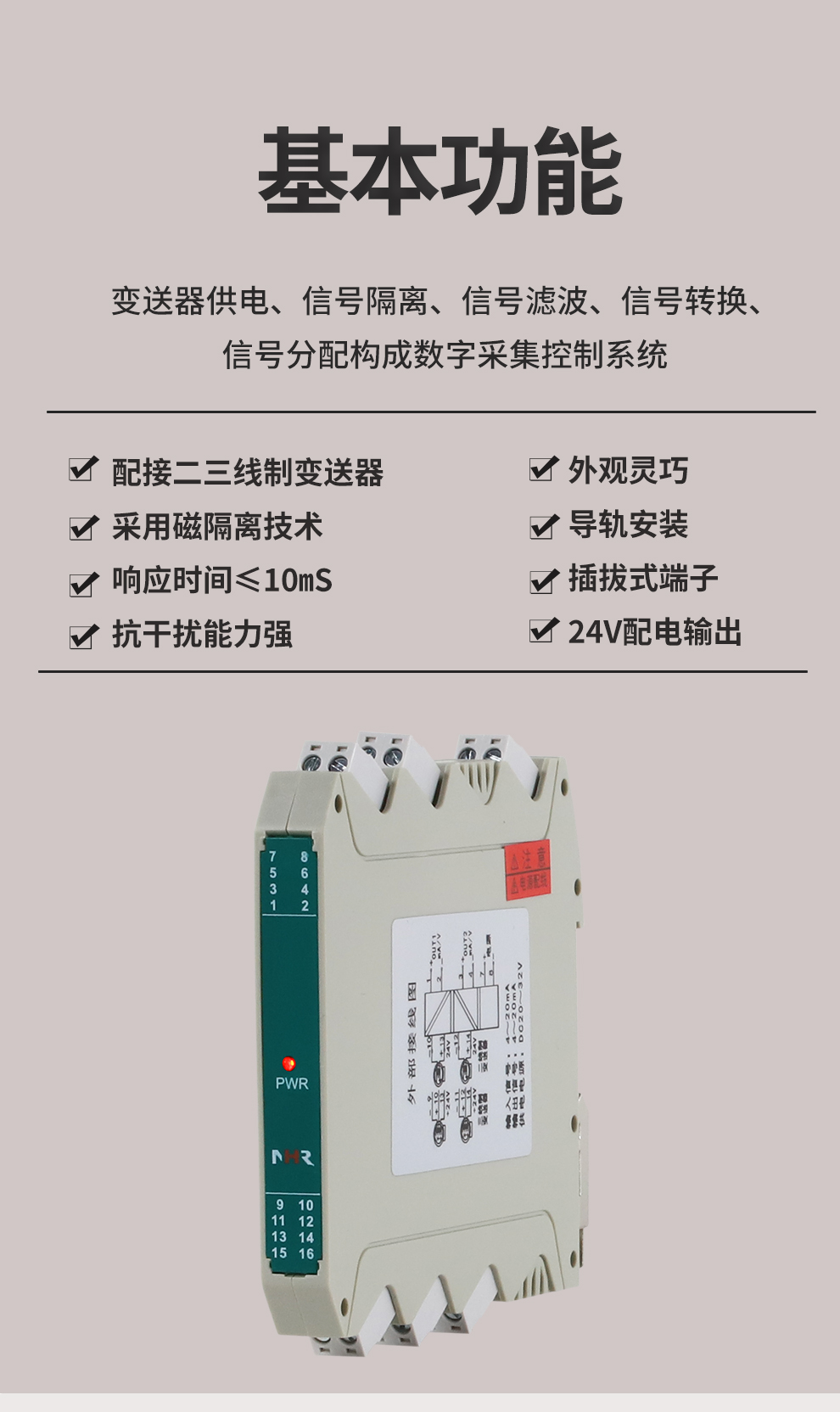 虹潤(rùn)公司是專(zhuān)業(yè)生產(chǎn)隔離器的國(guó)家專(zhuān)精特新“小巨人”企業(yè)。生產(chǎn)的配電器,具有配接二三線制變送器,采用磁隔離技術(shù),響應(yīng)時(shí)間快,抗干擾能力強(qiáng),24V配電輸出,性價(jià)比高等特點(diǎn)。該產(chǎn)品不僅通過(guò)德國(guó)萊茵 CE 認(rèn)證與 SIL 功能安全認(rèn)證,還獲得信號(hào)隔離器、二端子模塊、無(wú)源信號(hào)隔離器等3項(xiàng)國(guó)家發(fā)明專(zhuān)利,主持起草現(xiàn)場(chǎng)設(shè)備工具(FDT)接口規(guī)范、工業(yè)過(guò)程測(cè)量和控制系統(tǒng)用隔離式安全柵、工業(yè)過(guò)程測(cè)量和控制系統(tǒng)用配電器等3項(xiàng)國(guó)家標(biāo)準(zhǔn),以及通信系統(tǒng)多通道數(shù)據(jù)采集控制終端規(guī)范軍用標(biāo)準(zhǔn),參與國(guó)際5G標(biāo)準(zhǔn)制定。產(chǎn)品廣泛應(yīng)用于石油、化工,冶金、電力、食品、光伏能源、污水處理等需要電隔離的工業(yè)自動(dòng)化控制系統(tǒng)。