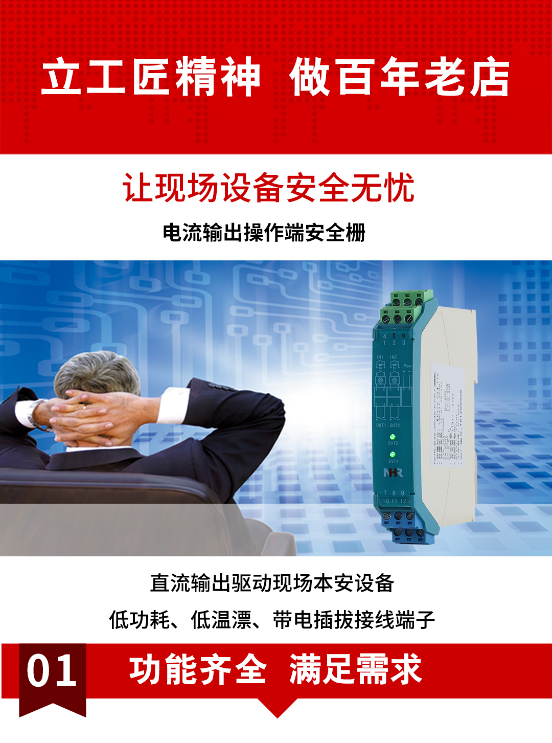虹潤(rùn)公司是專業(yè)生產(chǎn)隔離器的國(guó)家專精特新“小巨人”企業(yè)。生產(chǎn)的電壓/電流輸出操作端隔離柵涵蓋信號(hào)電壓輸入、電流輸入、開(kāi)關(guān)量輸入等多種產(chǎn)品類型。產(chǎn)品獲得具備減震抗干擾能力的溫度變送器、信號(hào)隔離器、一種二端子模塊、無(wú)源信號(hào)隔離器等4項(xiàng)國(guó)家發(fā)明專利,主持起草物聯(lián)網(wǎng)智能溫度儀表、現(xiàn)場(chǎng)設(shè)備工具(FDT)接口規(guī)范、工業(yè)過(guò)程測(cè)量和控制系統(tǒng)用溫度變送器等3項(xiàng)國(guó)家標(biāo)準(zhǔn),以及通信系統(tǒng)多通道數(shù)據(jù)采集控制終端規(guī)范軍用標(biāo)準(zhǔn)。參與國(guó)際5G標(biāo)準(zhǔn)制定,取得智能隔離式安全柵等4項(xiàng)相關(guān)軟件著作權(quán)。產(chǎn)品廣泛應(yīng)用于石油、電力、化工,冶金、智能制造、污水處理等諸多行業(yè)。