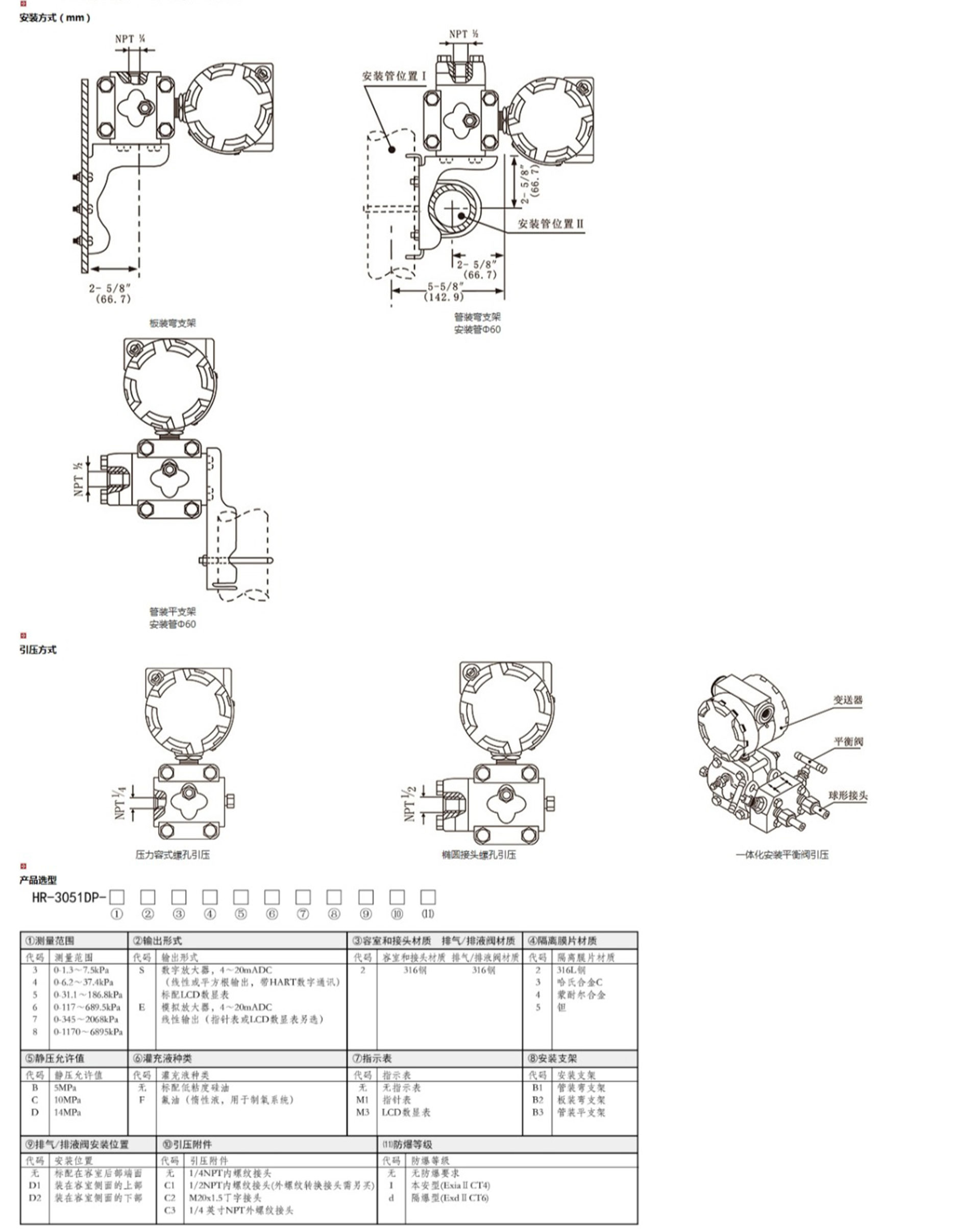 HR-3051DP差壓變送器主要用于測量液體、氣體或蒸汽的差壓、壓力、液位和密度,然后將其轉換成4~20mA.DC信號輸出。